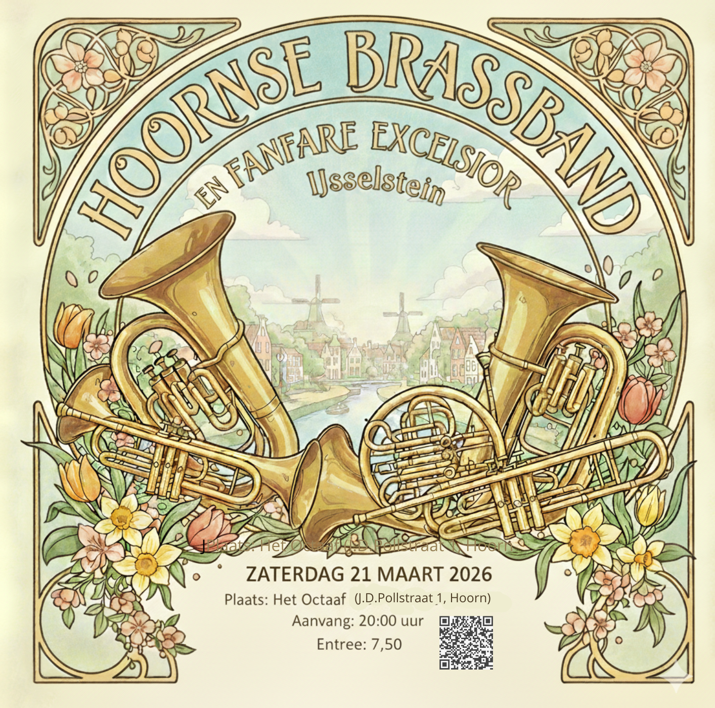 Het Octaaf J.D. Pollstraat 1, Hoorn, NetherlandsGezamenlijk concert in Hoorn: Fanfareorkest Excelsior & Hoornse Brassband zaterdag, 21 maart 2026 Toevoegen aan kalender Google Calendar iCalendar Outlook 365 Outlook Live Het IJsselsteins Fanfareorkest Excelsior geeft samen met […]